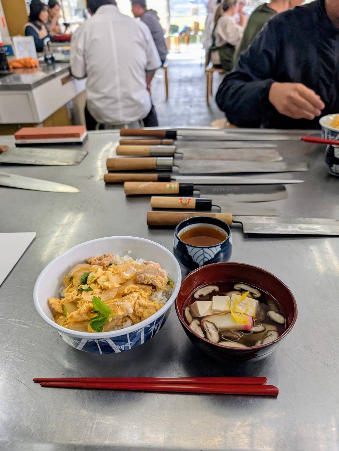 参加者みんなで調理し、親子丼とお吸い物をいただきました。