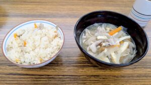 具沢山の豚汁や炊き込みご飯も調理しました。